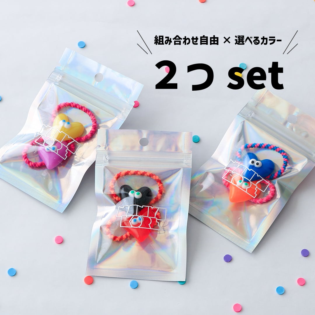 【♡選べるset】POP color Omeme Heart ヘアゴム 基本2つset~ 増やせる!カスタムOK キッズ 推しカラー リンクコーデ お揃い